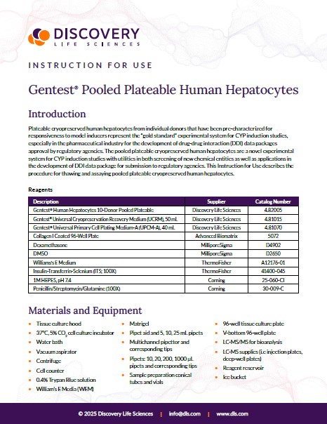 Pooled Plateable Human Hepatocytes Instruction for Use (IFU)